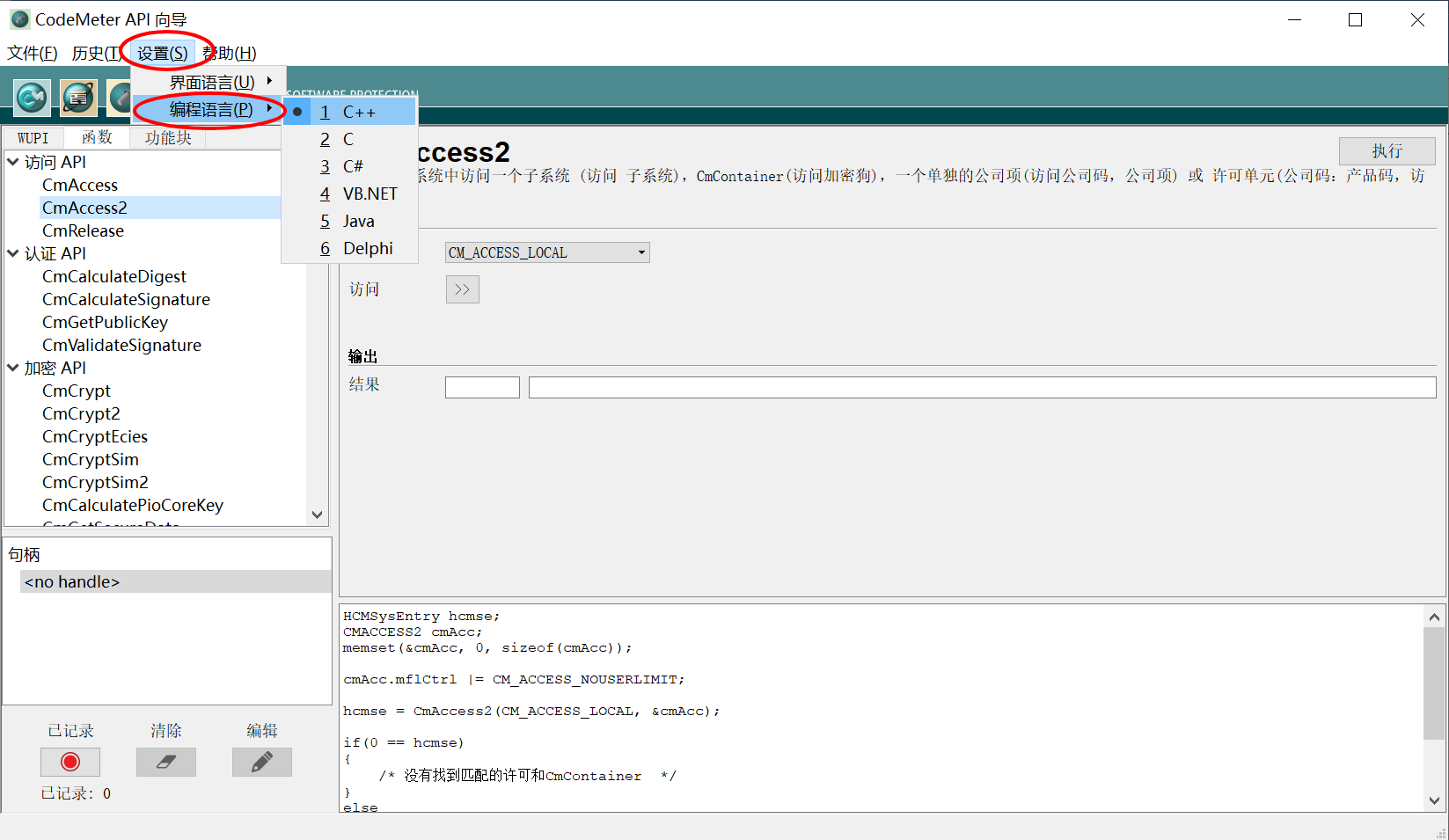使用CodeMeter加密方案,不同开发语言的API代码可以通过API Guide自动生成。