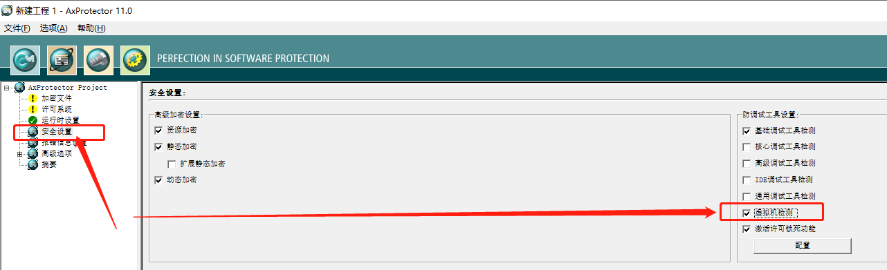 加密时若启用虚拟机检测,则在虚拟机运行时加密锁会锁死;