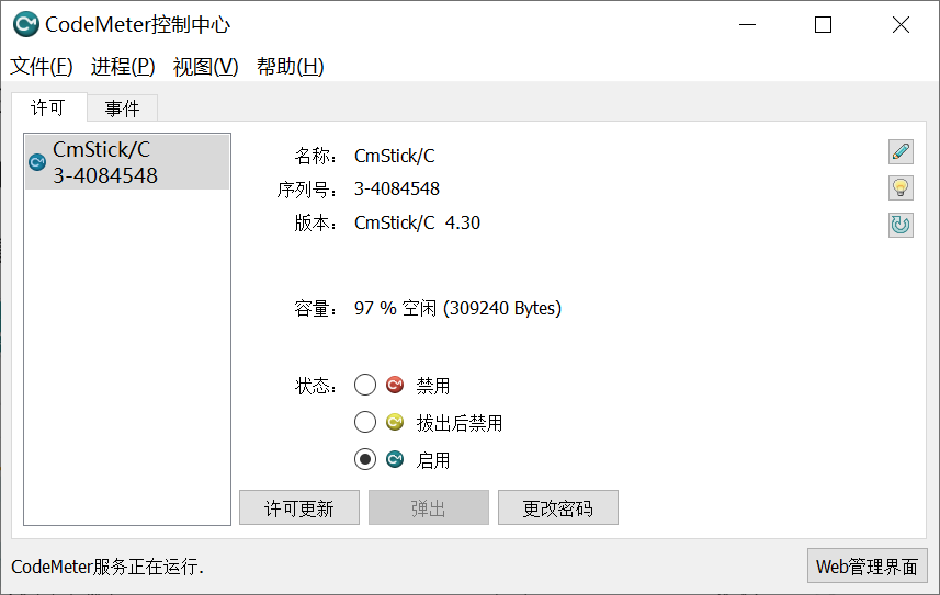 开始菜单栏->CodeMeter->CodeMeter Control Center
