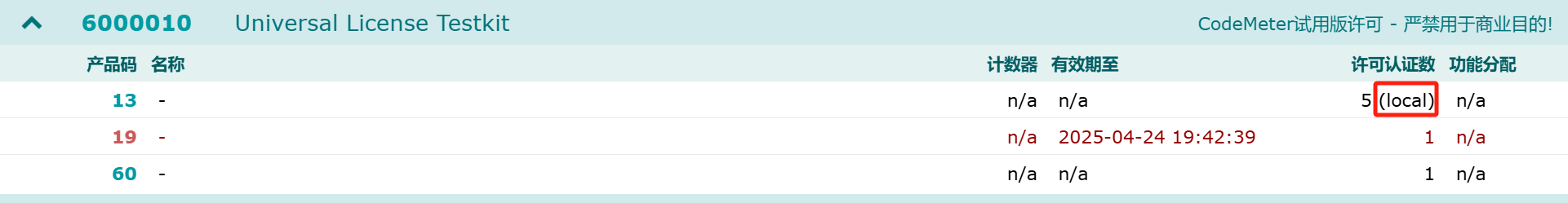 2.标准锁出现239错误,请检查授权信息,许可数量后不能有local属,有则代表单机使用,如下图所示: