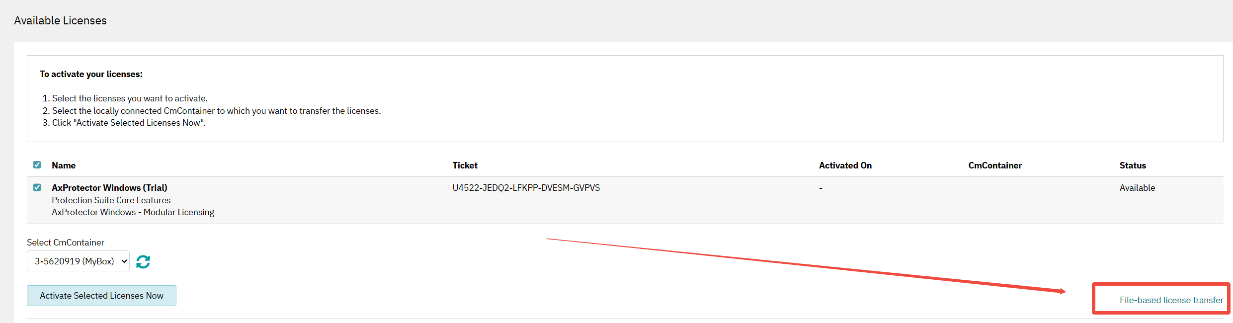 6. 点击页面右下角的 File-based license transfer 切换到离线激活模式(如果是按钮是 Direct License transfer 则无需点击按钮):