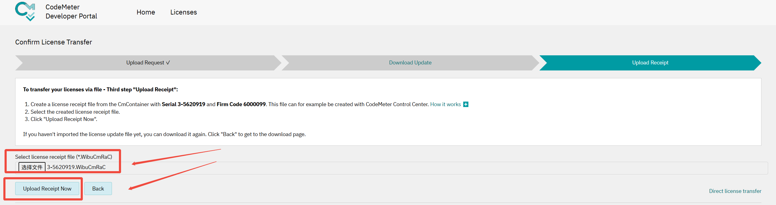 9. 最后,重新操作第2步,生成WibuCmRaC文件(不可以使用之前生成的,必须是导入更新之后生成的文件),按提示上传即可完成激活:
