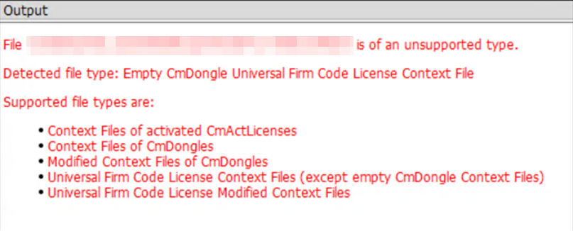 错误 Detected file type: Empty CmDongle Universal Firm Code License Context File 如何处理