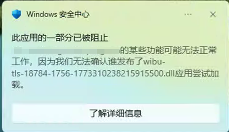 xx...xx的某些功能可能无法正常工作,因为我们无法确认谁发布了wibu-tls-xxxxx-xxxx-xx...xxx.dll应用尝试加载。