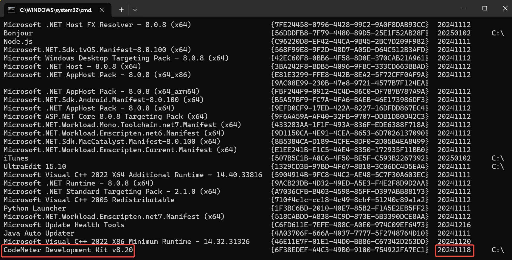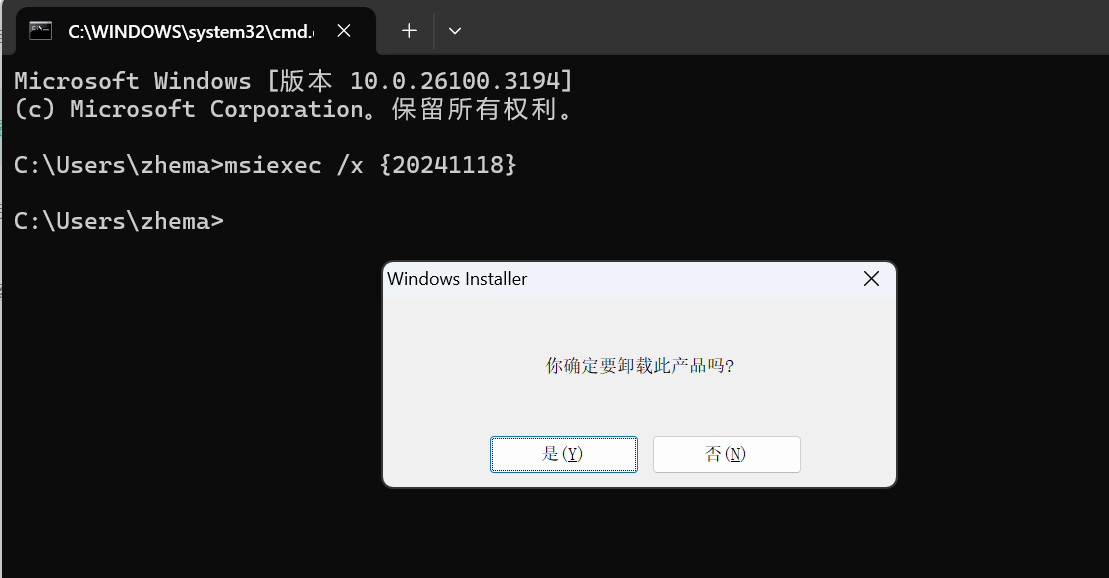 3.复制下想要删除的软件id,重新打开cmd,输入msiexec /x {卸载软件的id}命令进行卸载,如下图所示: