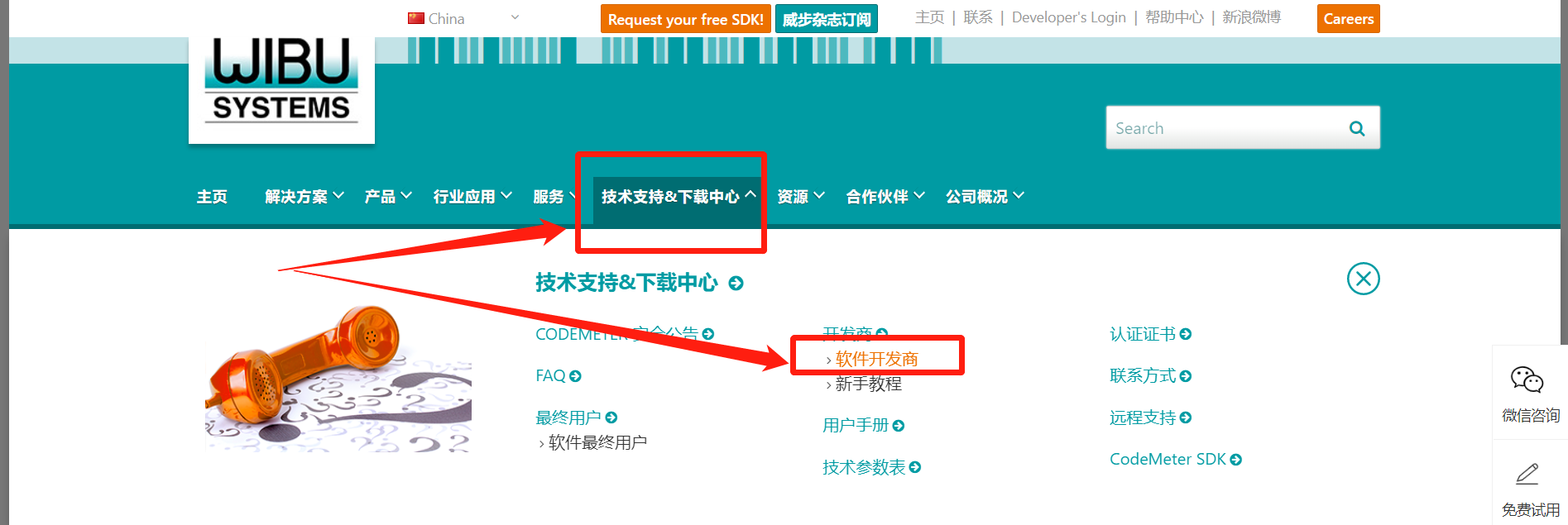 登录成功后,依次点击【技术支持&下载中心】-【软件开发商】