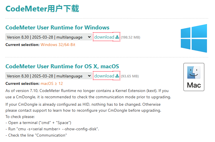 2. 选择操作系统下载对应的CodeMeter Runtime版本